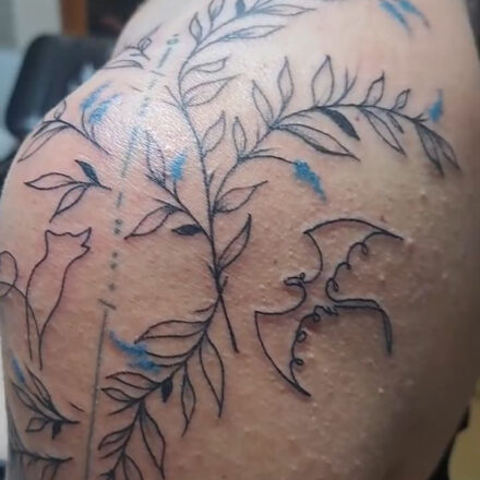 Tetování příroda, květiny, větvičky na boku