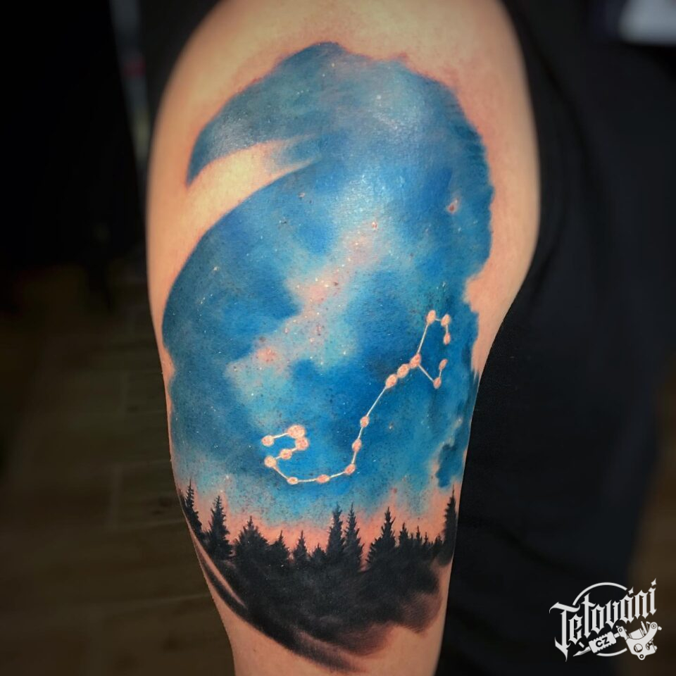 Tetování příroda les a souhvězdí, vesmír, neber na rameno