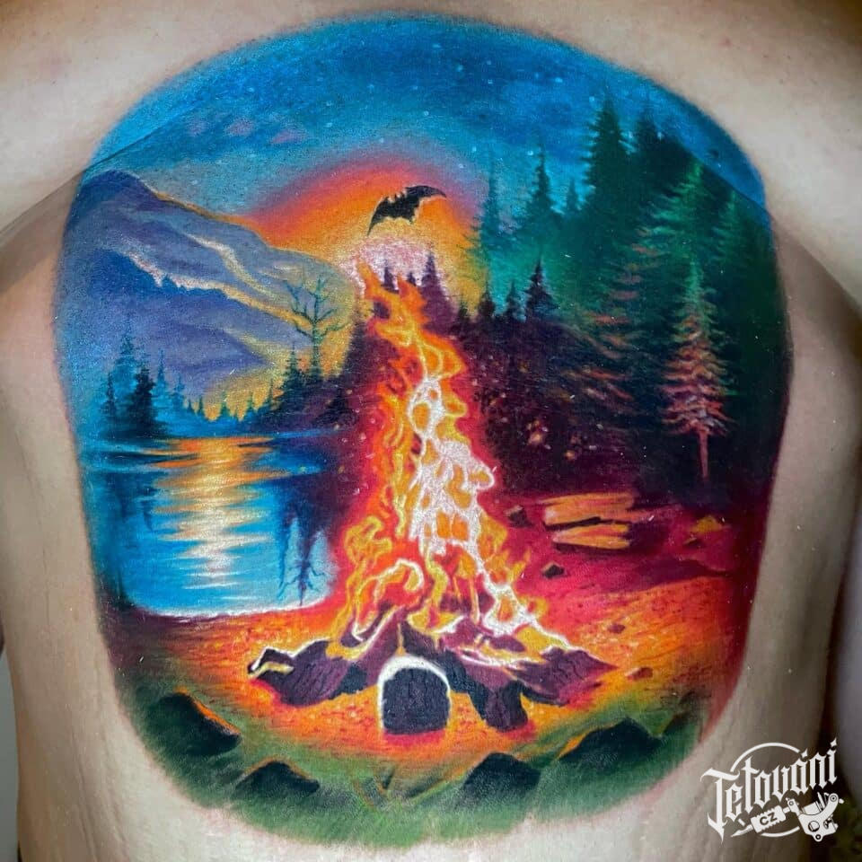 Tetování příroda, les, hory na