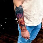 Tetování příroda, les, jelen na předloktí