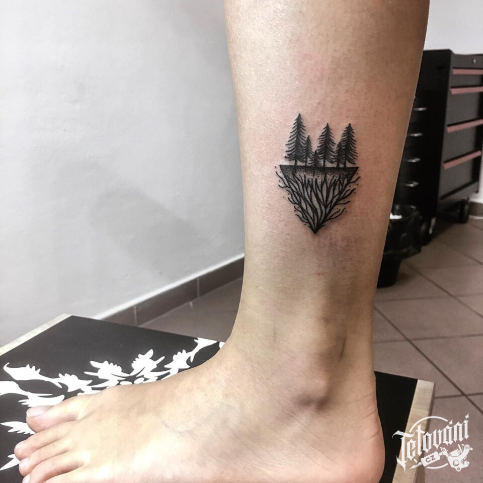 Tetování příroda, les na lýtko