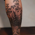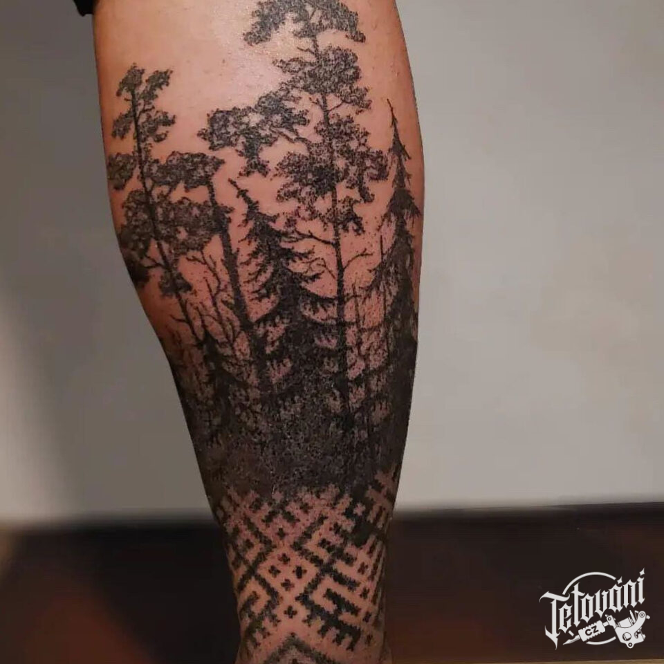 Tetování příroda, les na lýtku