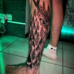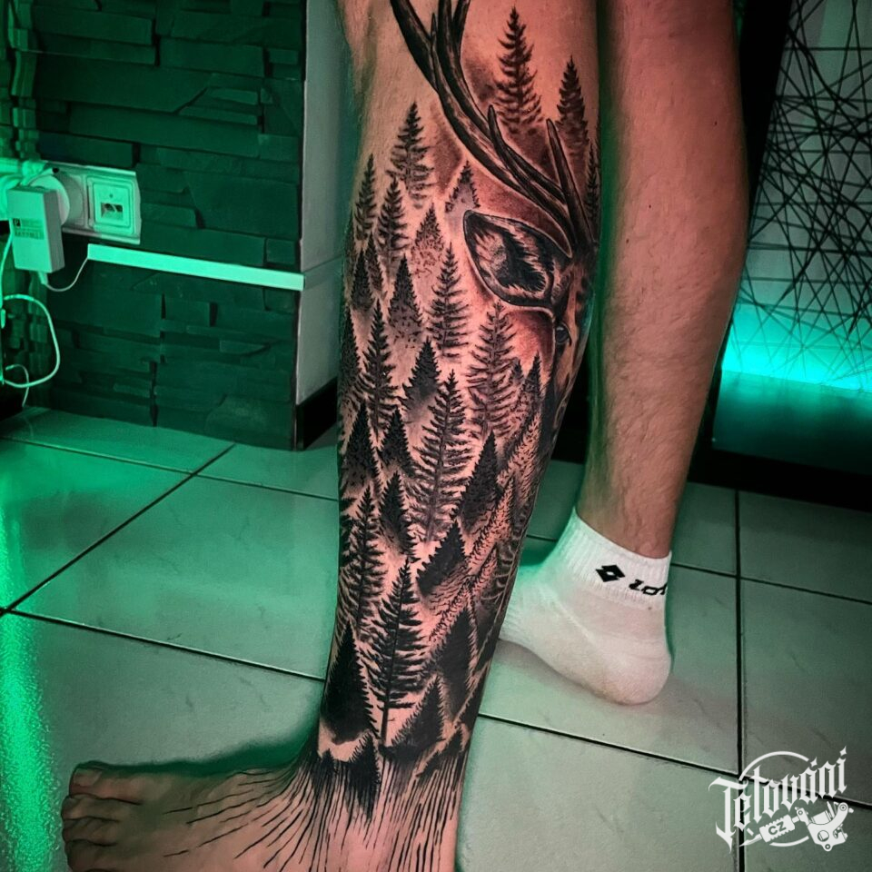 Tetování příroda, les na lýtku