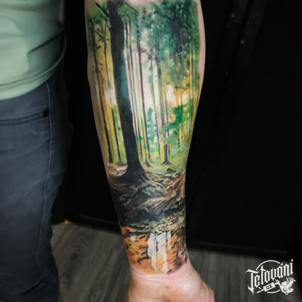 Tetování příroda, les na předloktí