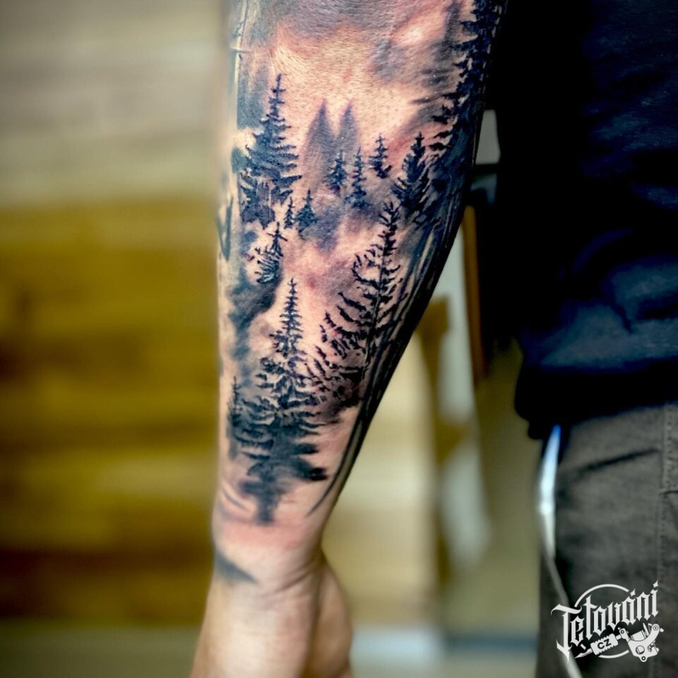 Tetování příroda, les na předloktí