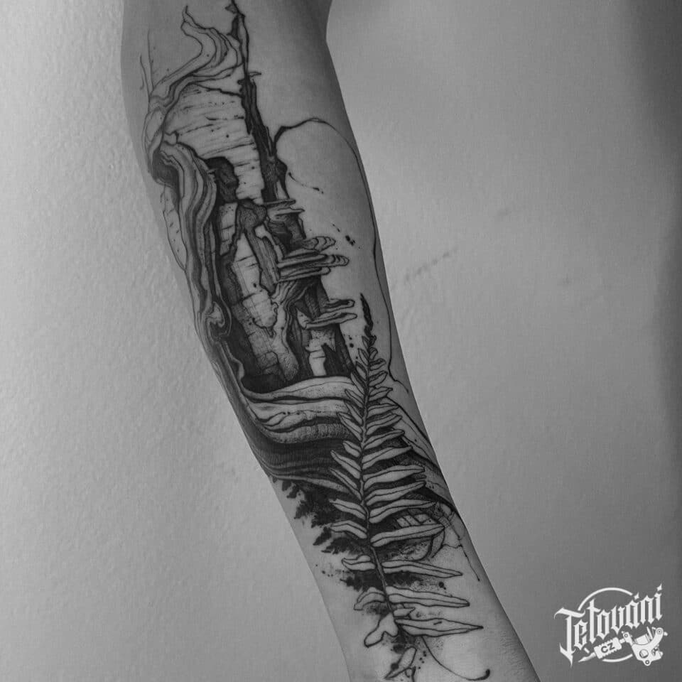 Tetování příroda, les na předloktí