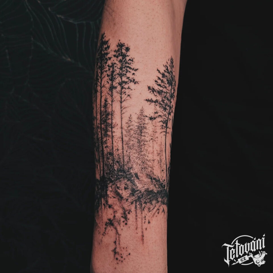 Tetování příroda, les na předloktí