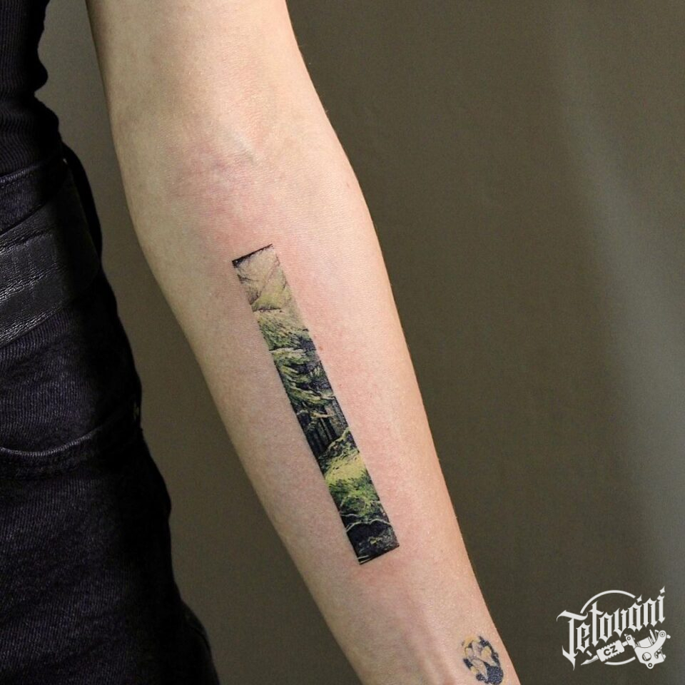 Tetování příroda, les na předloktí