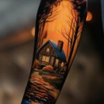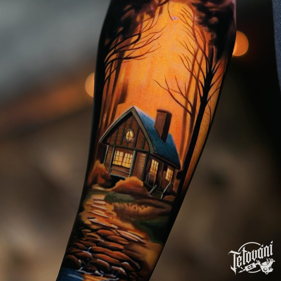 Tetování příroda, les na předloktí