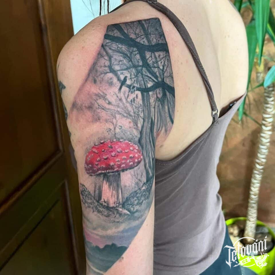 Tetování příroda, les na rameni