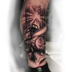 Tetování příroda les, strom, pila na holeň