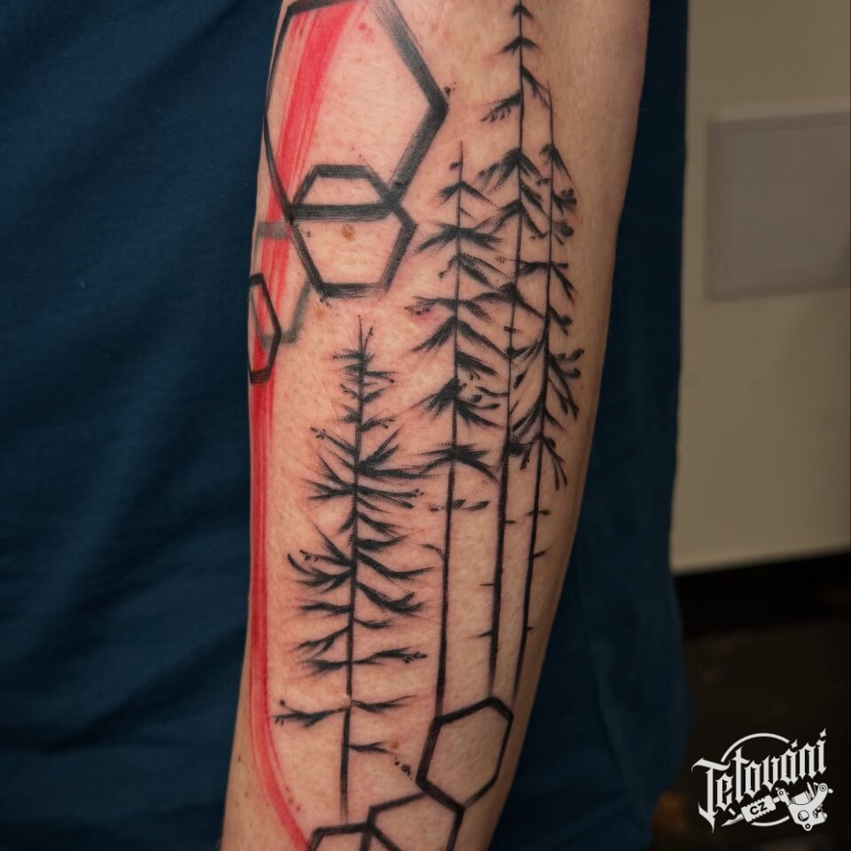 Tetování příroda, les, stromy, tvary na předloktí