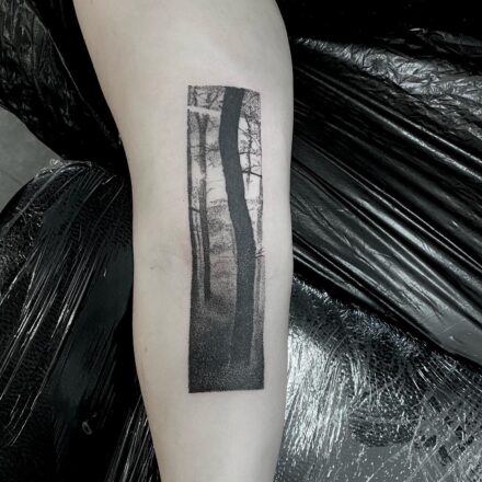Tetování příroda, les, znaky a symboly, tvary a abstraktní čáry na noze