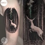 Tetování příroda les, zvíře jelen na rameno