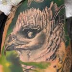 Tetování příroda, les, zvíře pták na bok stehna