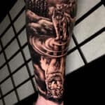 Tetování příroda, les, zvíře vlk na předloktí
