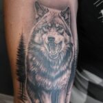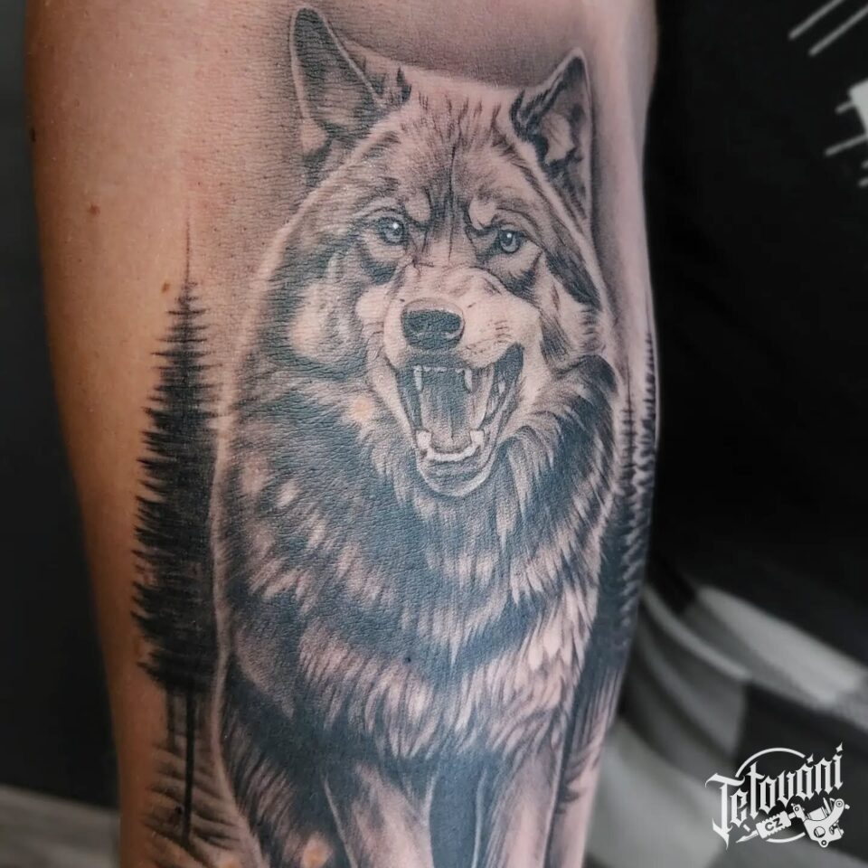 Tetování příroda, les, zvíře vlk na předloktí