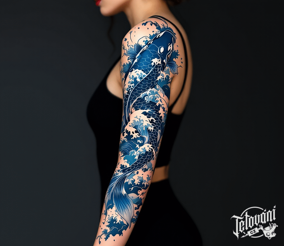 Tetování příroda, moře, koi kapr, ryba, rukáv