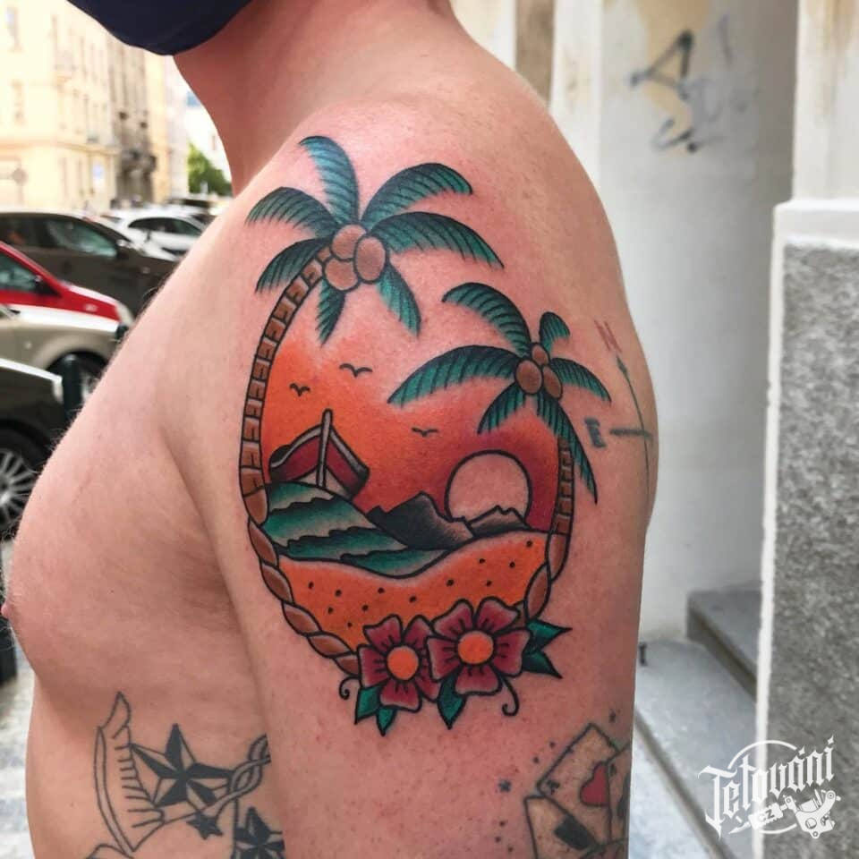 Tetování příroda, moře na rameni