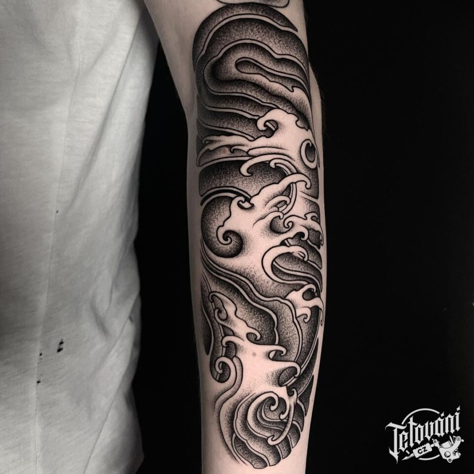 Tetování příroda, moře, vlny na předloktí