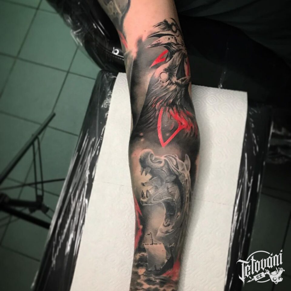 Tetování, příroda, moře, zvířata, havrani na předloktí