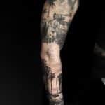 Tetování příroda, palmy a žena na rukávu