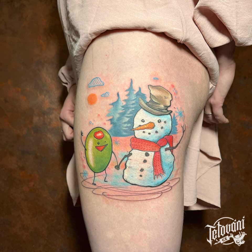 Tetování příroda, postavičky na boku stehna