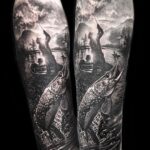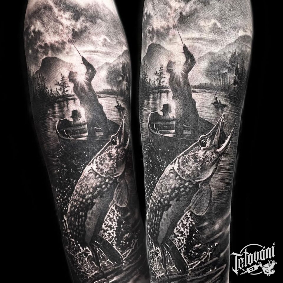 Tetování příroda, rybáři, zvířata, ryba na předloktí