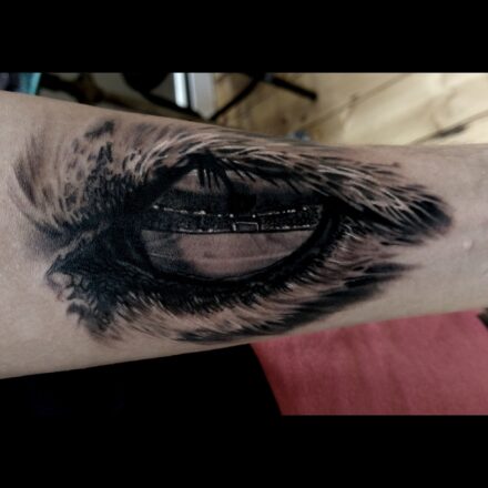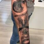 Tetování příroda, stromy a oko na předloktí
