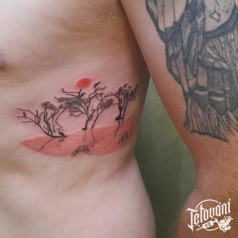 Tetování příroda, stromy na žebra