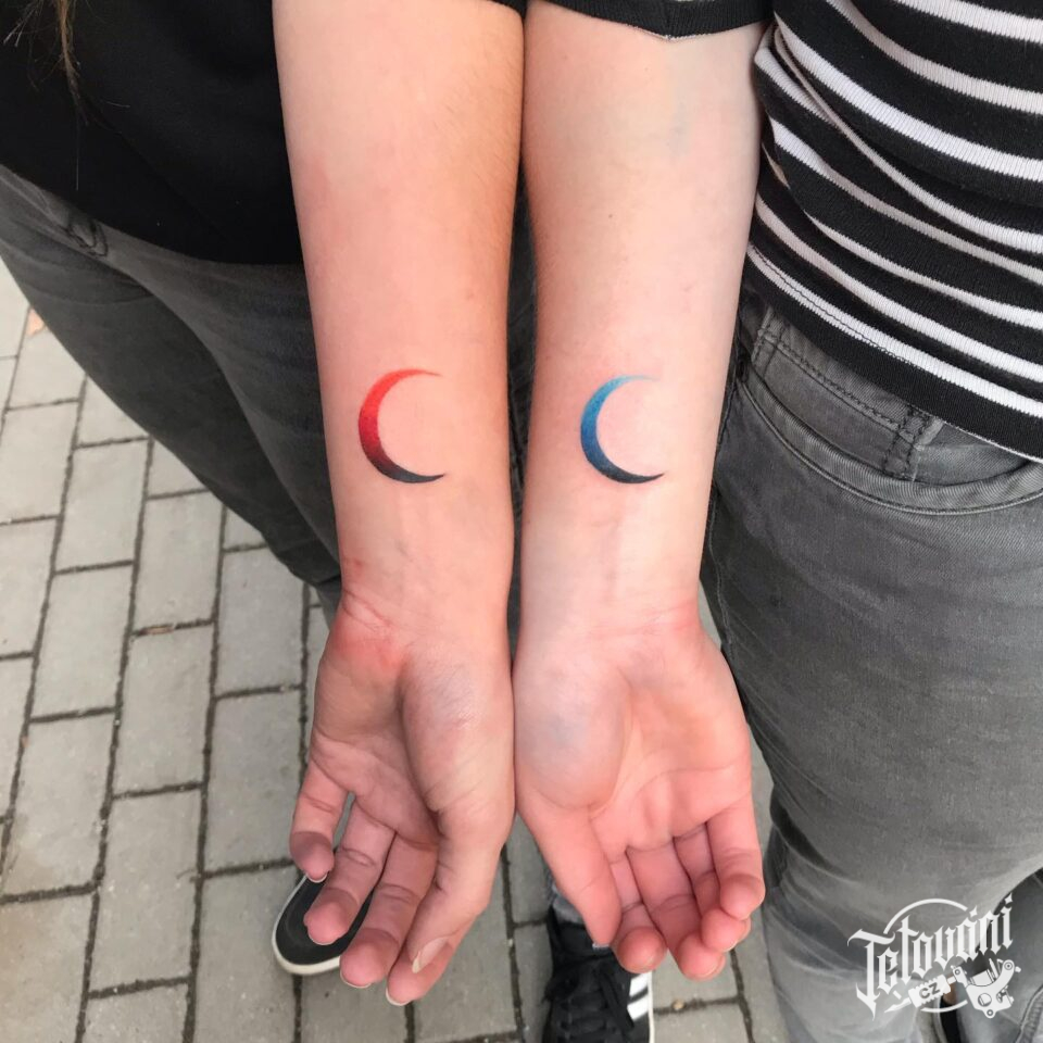 Tetování pro kamarádky, společná tetování, planety, měsíc na předloktí