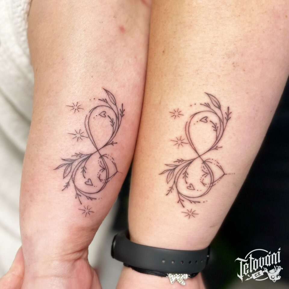 Tetování pro páry, společná tetování, nekonečno, ležatá osmička na předloktí