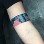 Tetování pruh, příroda, les a zvířata na bicepsu