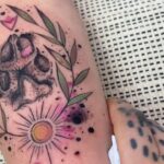 Tetování psí tlapka, květiny na předloktí