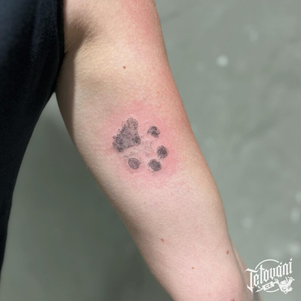 Tetování psí tlapka na paži