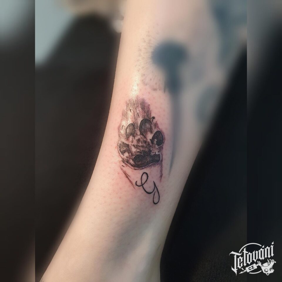 Tetování psí tlapka na předloktí