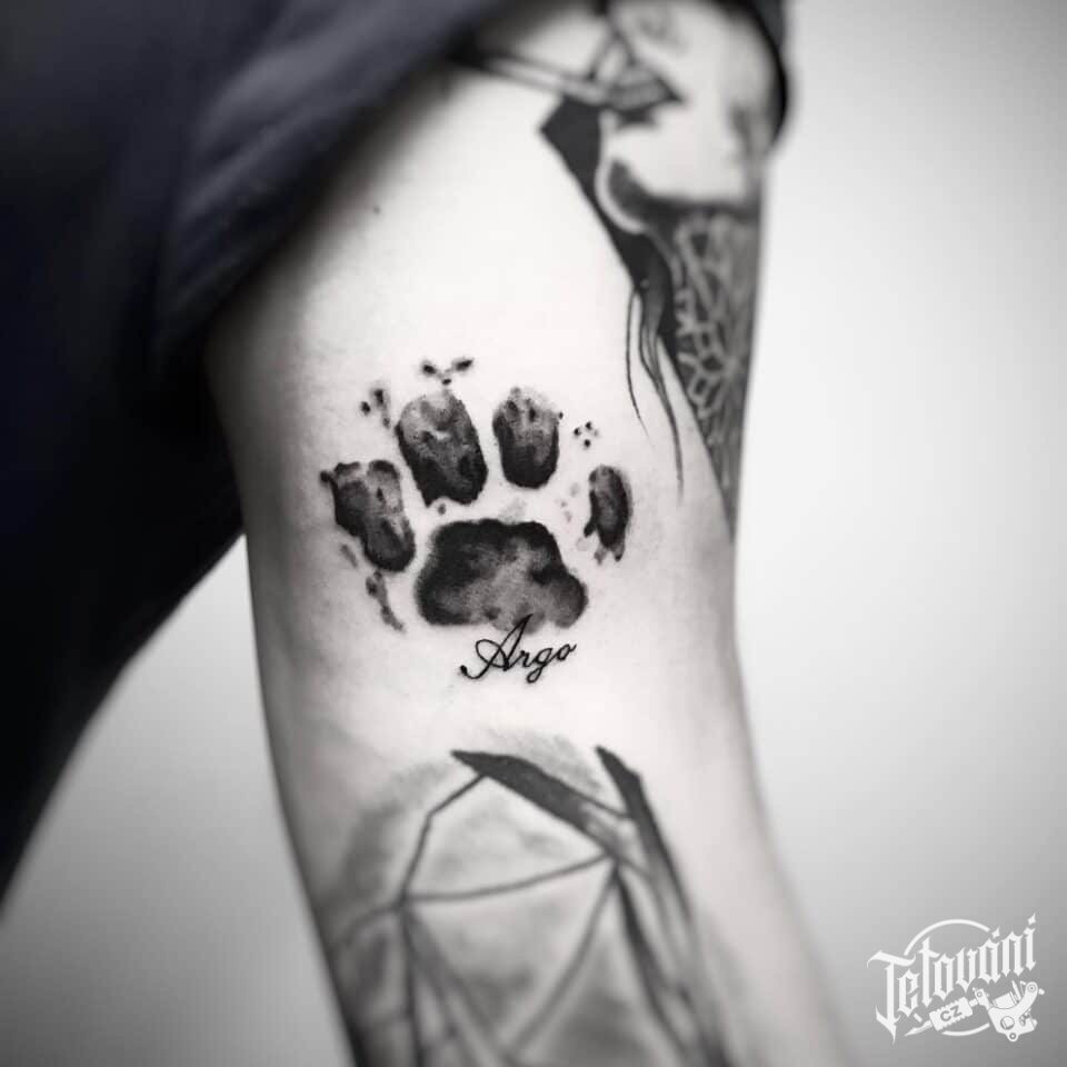 Tetování psí tlapka na rameno