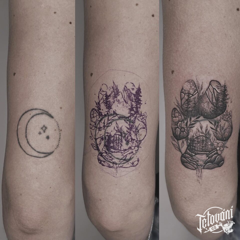 Tetování psí tlapka, příroda, květiny na paži