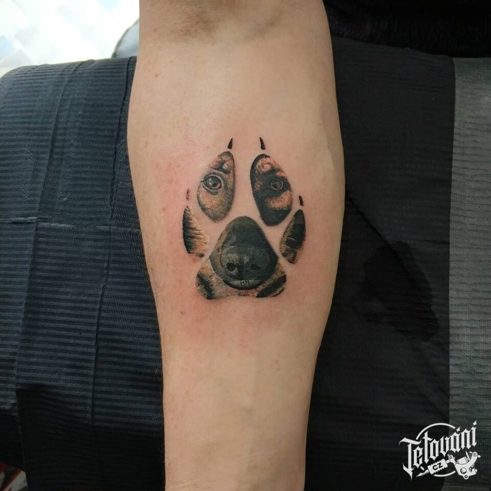Tetování psí tlapka, zvíře, pes na předloktí