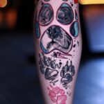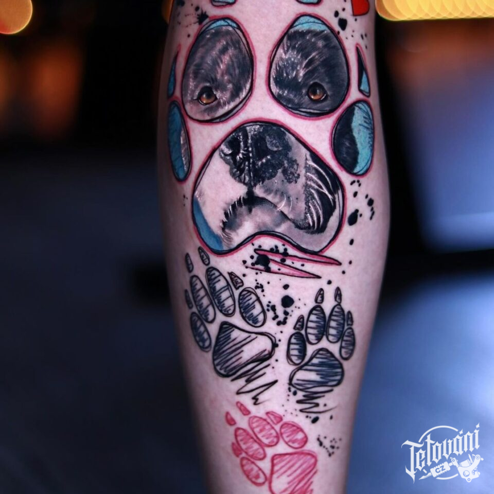 Tetování psí tlapky, pes, symboly lásky na lýtko