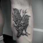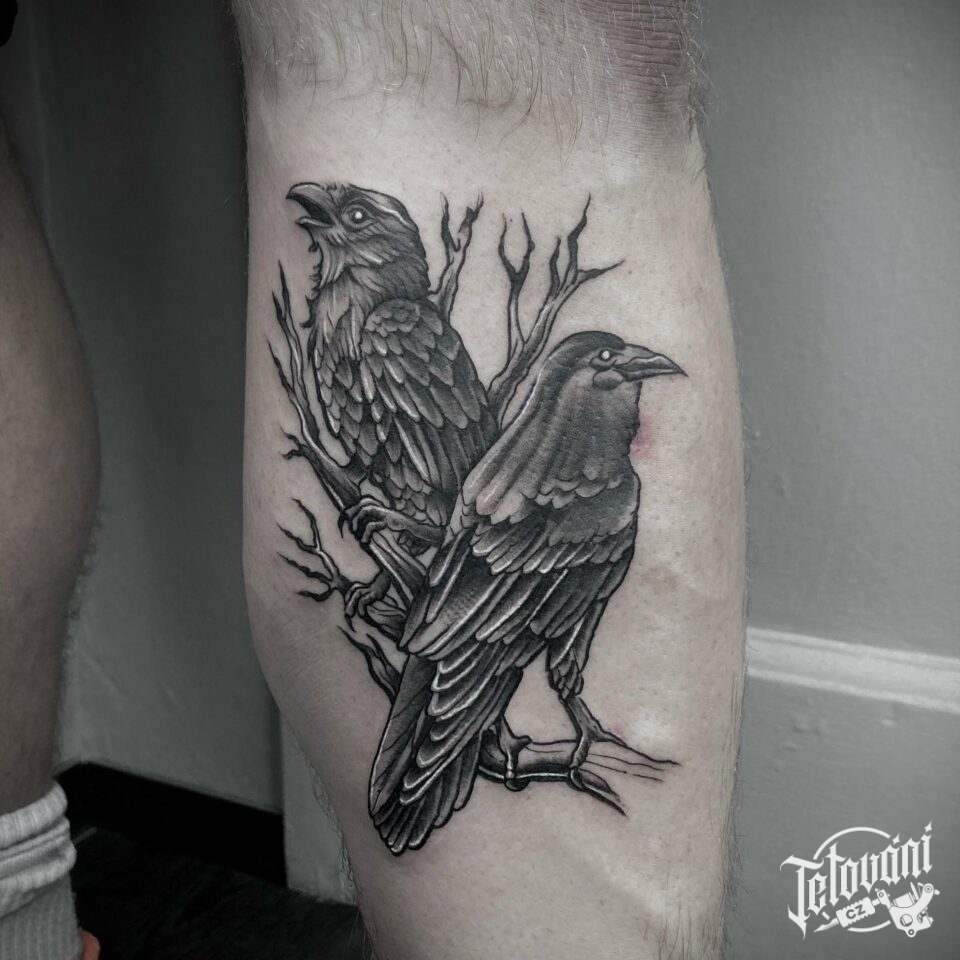 Tetování ptáci, havrani na lýtku
