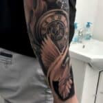 Tetování ptáci, holubice a hodiny na předloktí