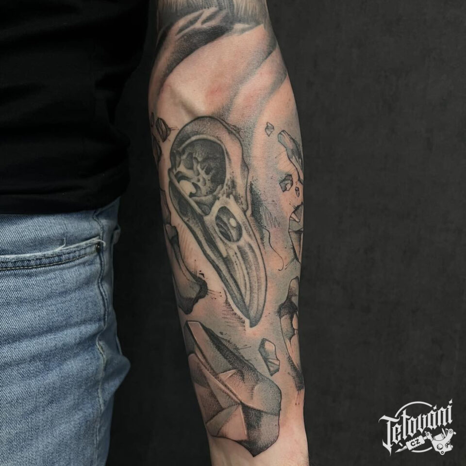 Tetování ptačí lebka na předloktí