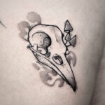 Tetování ptačí lebka na stehně