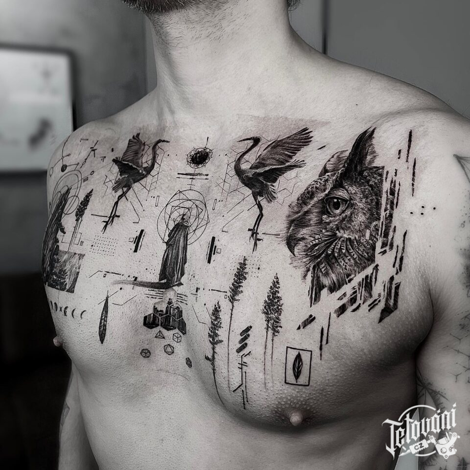 Tetování ptáci na hrudi