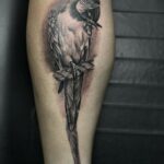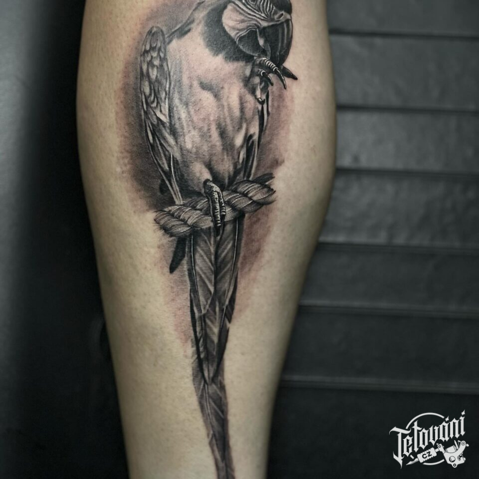 Tetování ptáci, papoušek na lýtku