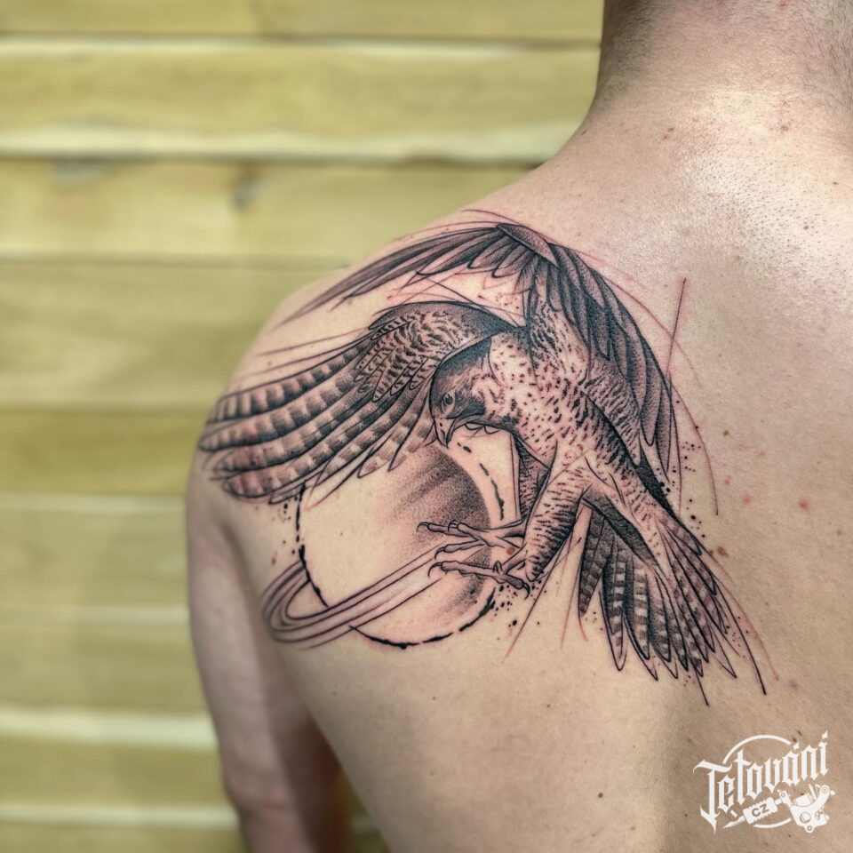 Tetování ptáci, sokol na rameni