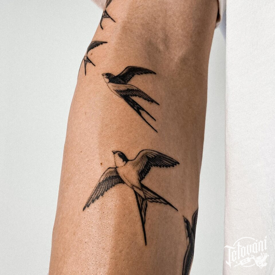 Tetování zvířata, ptáci, vlaštovky na předloktí