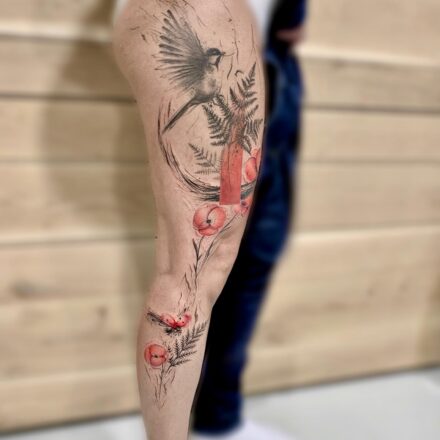 Tetování ptáci, vlčí mák na ruku