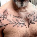 Tetování pták, nápis na prsou